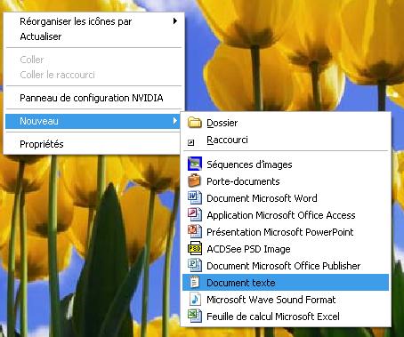 - Un document texte (clic droit sur le bureau > nouveau > document texte )