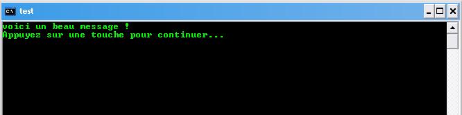 En ms-dos, les accents ne sont pas reconnus ! Alors évitez d'en mettre dans vos programmes sinon vos aurez un carctère étrange qui s'affichera :