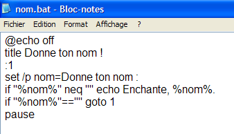 Si vous ne mettez pas "@echo off" au début de votre programme, ce dernier fonctionnera mais vous aurez bien du mal à le comprendre.
