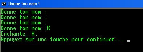 Dans ce cas l'utilisateur ne veut pas donner son nom, donc on lui répète la question.